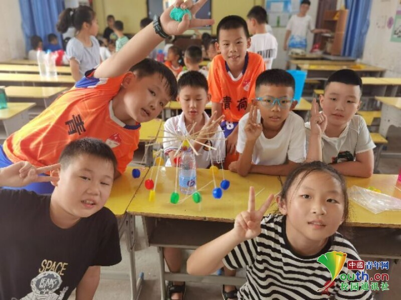 图为小朋友们展示实验成果。中国青年网通讯员 张攀 供图
