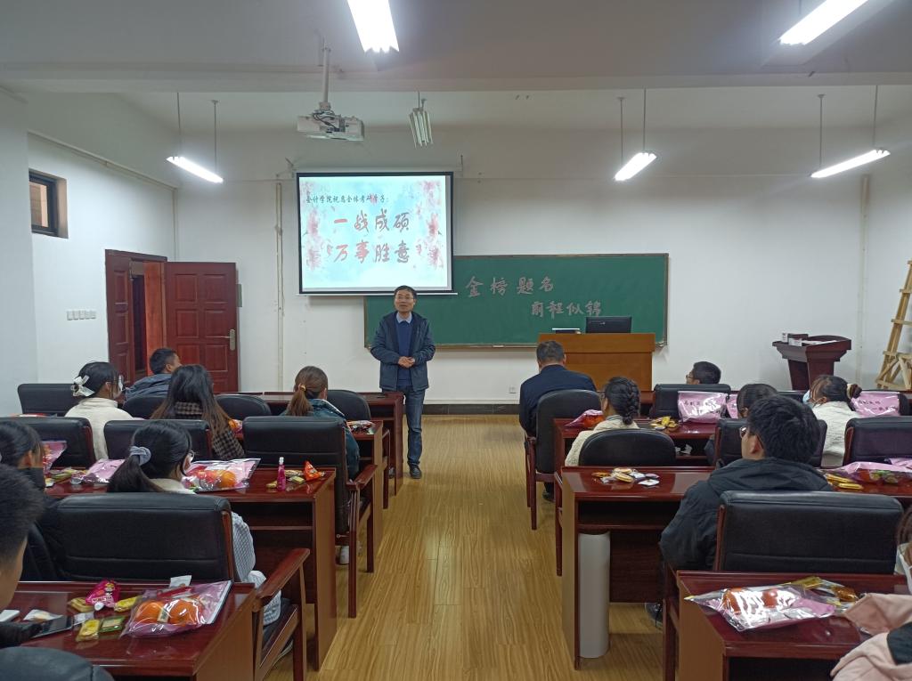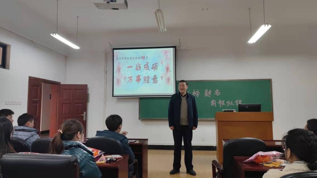 杜国良寄语同学们,要调整好心态,以最放松的状态和最饱满的精神参加考试;要确定好目标,做到终生学习,考研不是学习的终点,而是人生下一个更重要阶段的起点;要把握好机会,珍惜党和国家为每位学生创造的良好条件,接续奋斗梦想,厚植爱国情怀。他亲切地对同学们说:“yl23455永利官网是同学们出发的地方,学院重视每一位同学,这里永远是你们的家,祝愿你们都能奔赴理想的院校!”