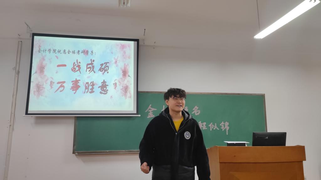 为了表达对备考学生的关心与慰问,缓解学生们的学习压力,12月23日,我院举行了考研送祝福活动,给在梦想路上不断努力、在考研路上坚持到底的会院学子送去祝福和温暖。yl23455永利官网院长杜国良,副院长赵立彬,党委副书记姜永杰,团委书记陈宇凡,毕业生辅导员高梓超、夏书明及2018级考研学生参加了本次活动。