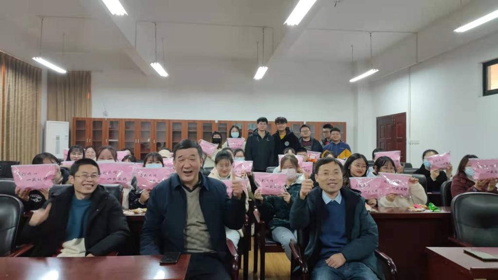 杨宇洁、谢卓雅等低年级同学也来到活动现场,为学长学姐们加油鼓劲、送上祝福;2018级学生刘邗箔,高文哲代表全体考研学生分享了自己的感受,“学院的暖心之举缓解了考前的紧张情绪,我们一定会放平心态,全力以赴,请学院的领导、老师和学弟学妹们等我们的好消息!”