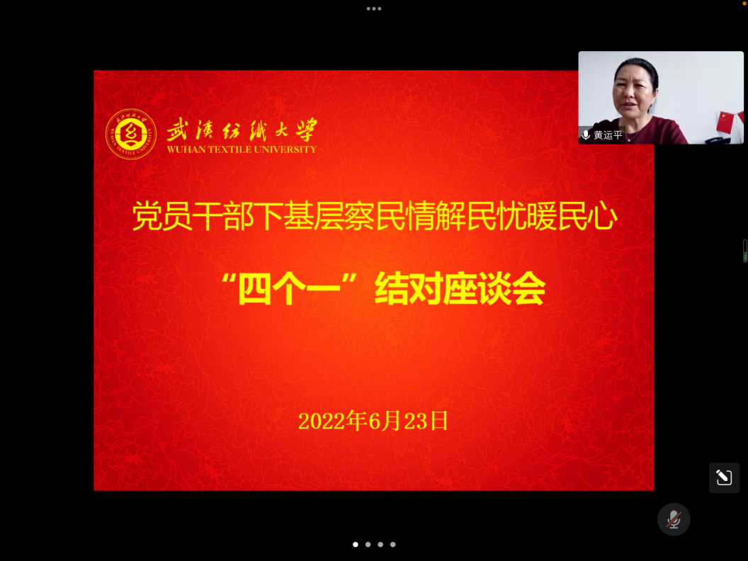 6月23日上午,校党委常委、副校长黄运平深入yl23455永利官网,参加“下基层察民情解民忧暖民心”实践活动“四个一”结对线上座谈会,与结对的会计学生第二党支部、会计11902班、结对宿舍和结对学生深入交流。座谈会由yl23455永利官网院长赵立彬主持。