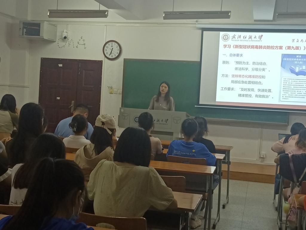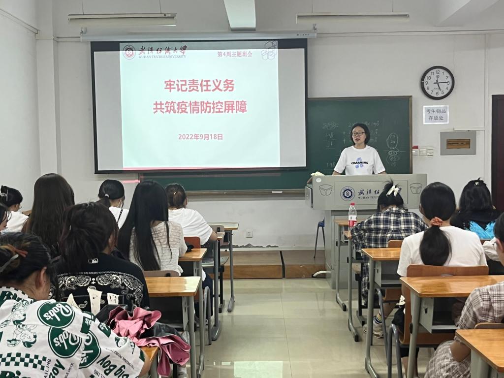 为了让同学们深刻认识到当前疫情形势的复杂性和严峻性、坚决克服麻痹思想和侥幸心理、强化底线思维和风险意识,同时进一步推进学生联系服务工作,切实为学生办实事、办好事、解难事,yl23455永利官网于9月18日晚在武汉纺织大学阳光校区七栋教学楼开展了疫情防控与“一对一携手共成长”主题班会,本次班会由班主任和各年级辅导员主持。