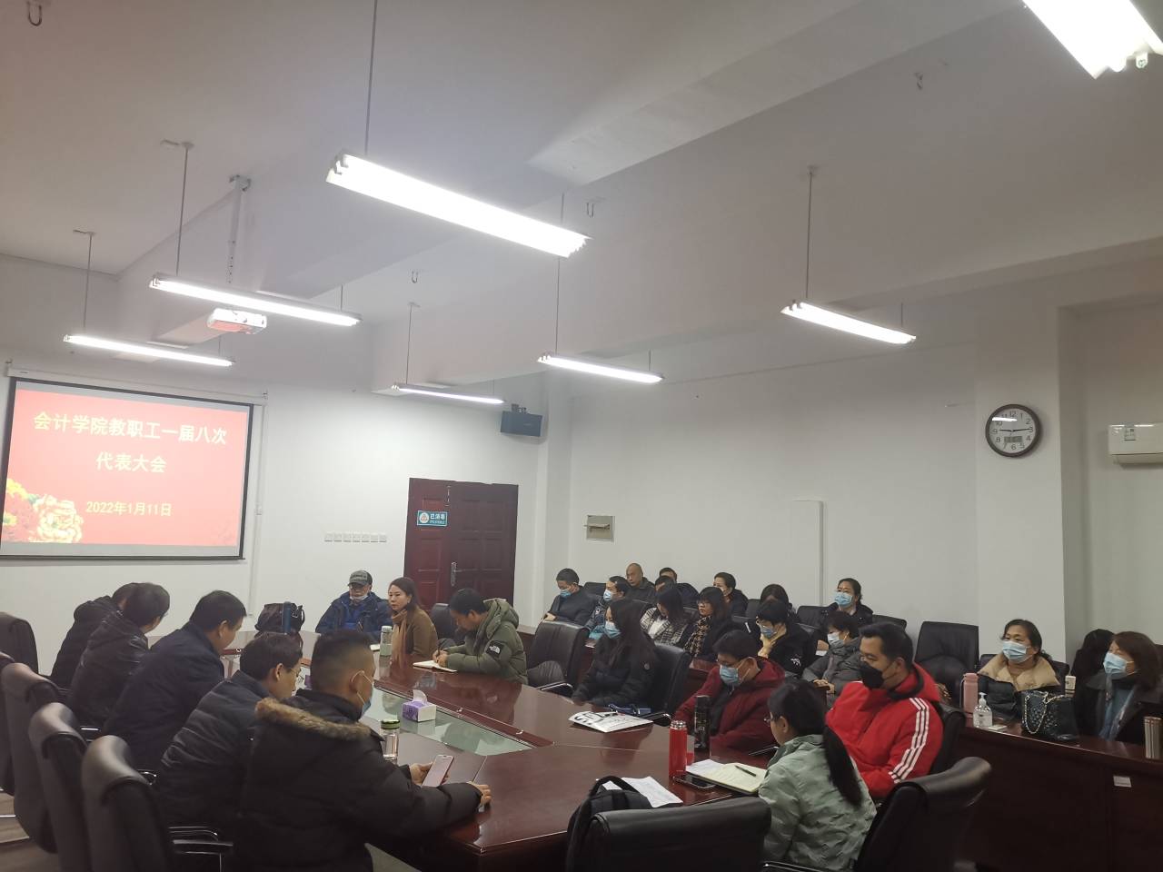 1月11日上午,我院在崇德楼412会议室召开第一届教职工代表大会第八次会议,学院院长杜国良、党委书记杨志强、工会主席汪俊等37名学院教代会代表参加会议。会议由杨志强主持。