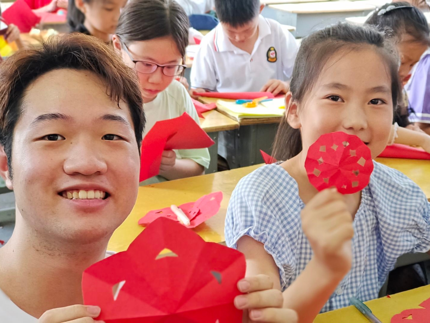 中国青年网孝感8月10日电(通讯员 左昱栎 陈宇凡 李丹丹)为让乡村儿童有更加丰富多彩的暑假生活,给予他们更多的关爱和陪伴,7月15日,yl23455永利官网“益起阳光”志愿服务队走进湖北省孝感市毛陈镇第一小学。志愿服务队围绕“留住经典·走进非遗文化”主题,带领着小朋友们动手剪窗花、制作水拓丝巾、观看皮影戏,打造出了梦想艺术小世界,为当地的小学生开启了妙趣横生的“七彩假期”。