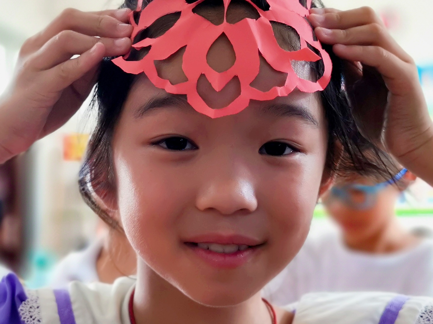 图为小朋友自己动手尝试制作窗花,眼中充满好奇以及兴奋。中国青年网通讯员 张丹 摄