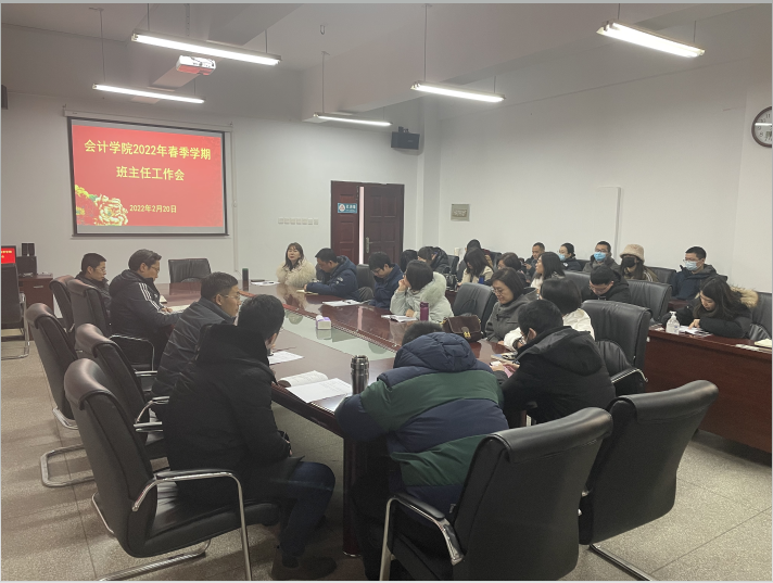 2月20日下午,我院在阳光校区崇德楼412会议室召开2021-2022学年第二学期班主任工作会,学院党委书记杨志强,副院长赵立彬,党委副书记姜永杰,全体班主任、辅导员参加会议。