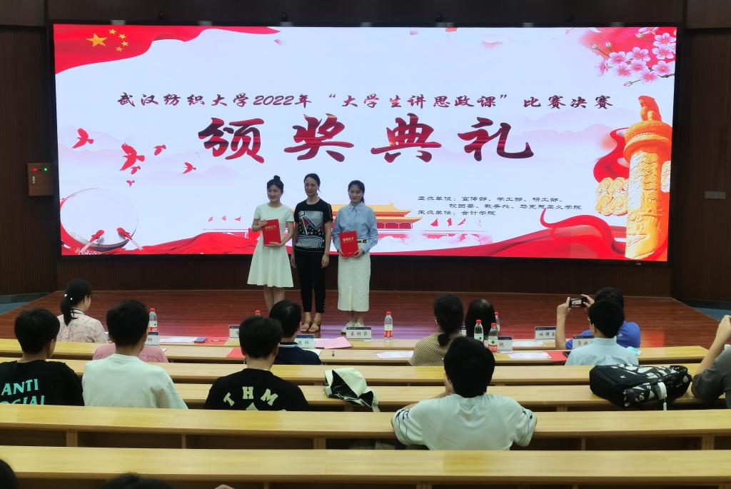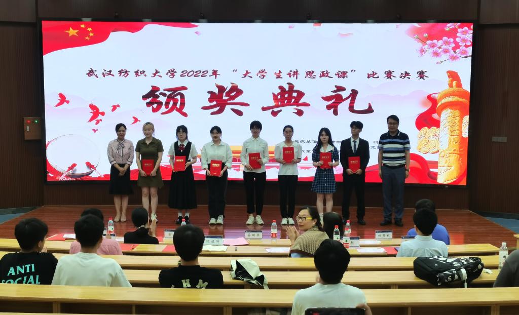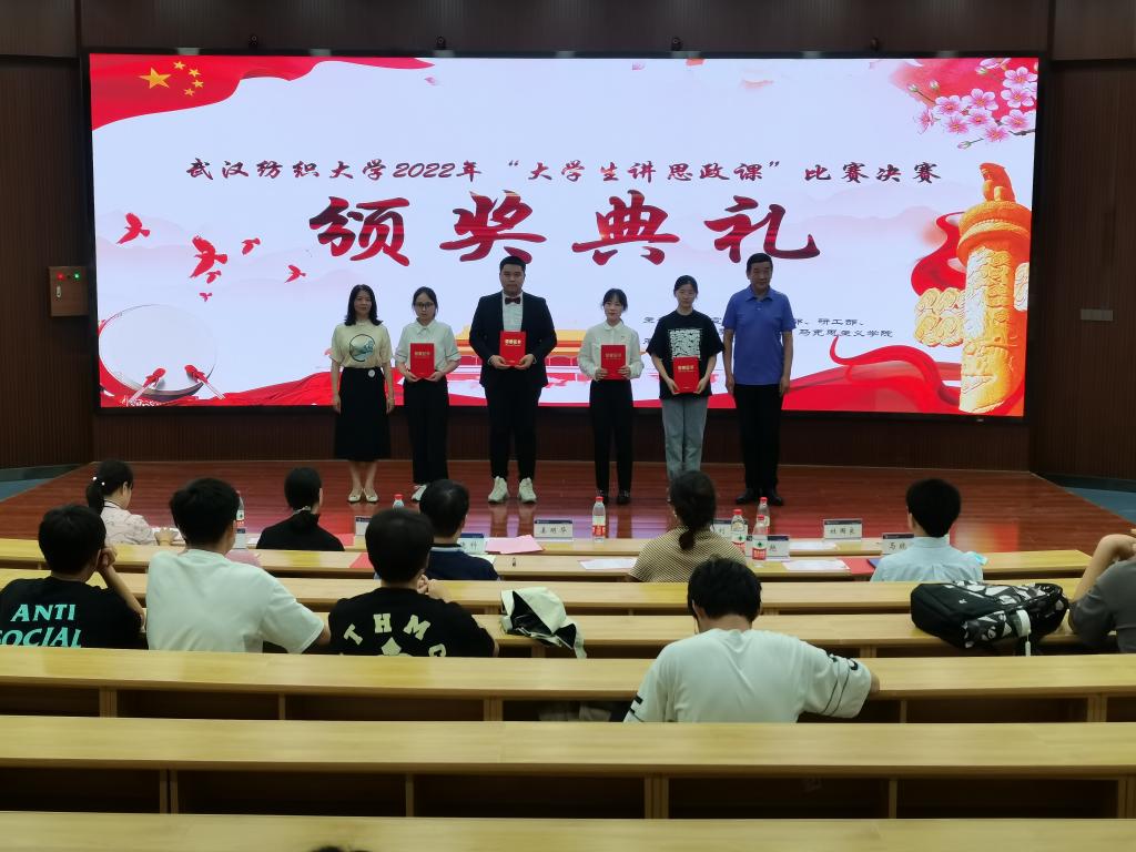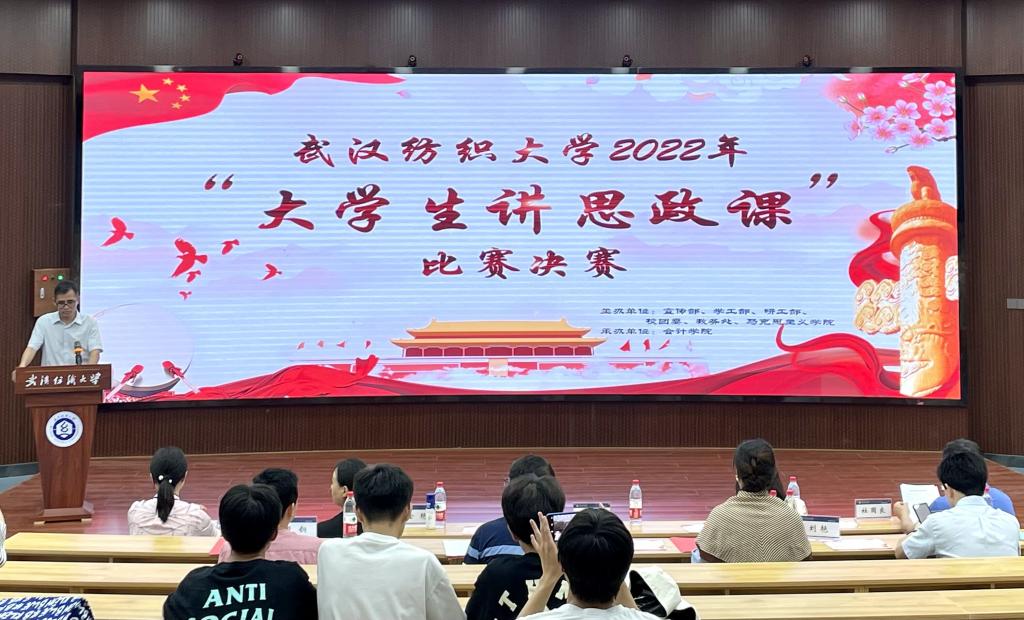 5月31日晚,武汉纺织大学2022年“大学生讲思政课”比赛决赛在阳光校区崇志楼T201报告厅隆重举行。校党委常委、副校长姜明华教授,校党委常委、党委组织部部长、马克思主义学院院长金艳教授亲临现场指导。党委宣传部、学工部、校团委、教务处、研究生院、马克思主义学院、yl23455永利官网等主办、承办单位负责人、指导老师出席了活动。各学院参赛选手和观众100余人参加活动。