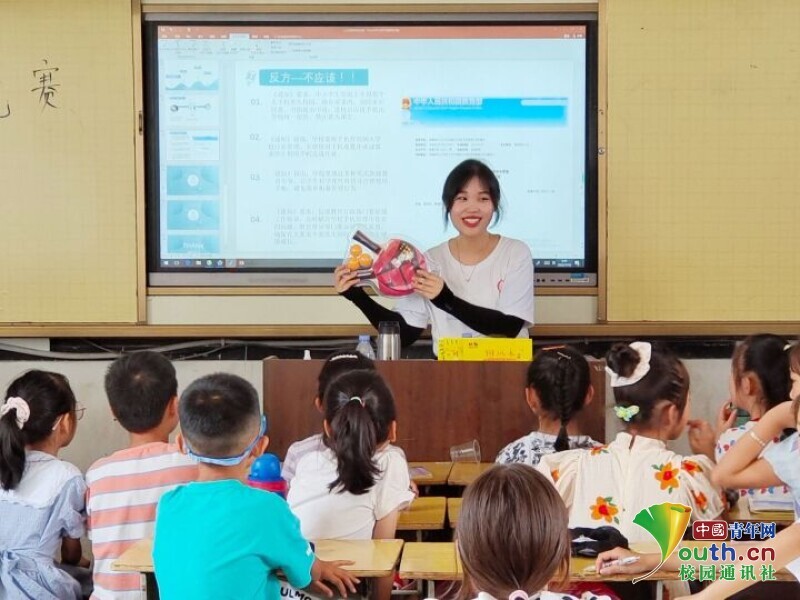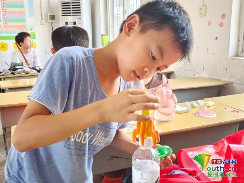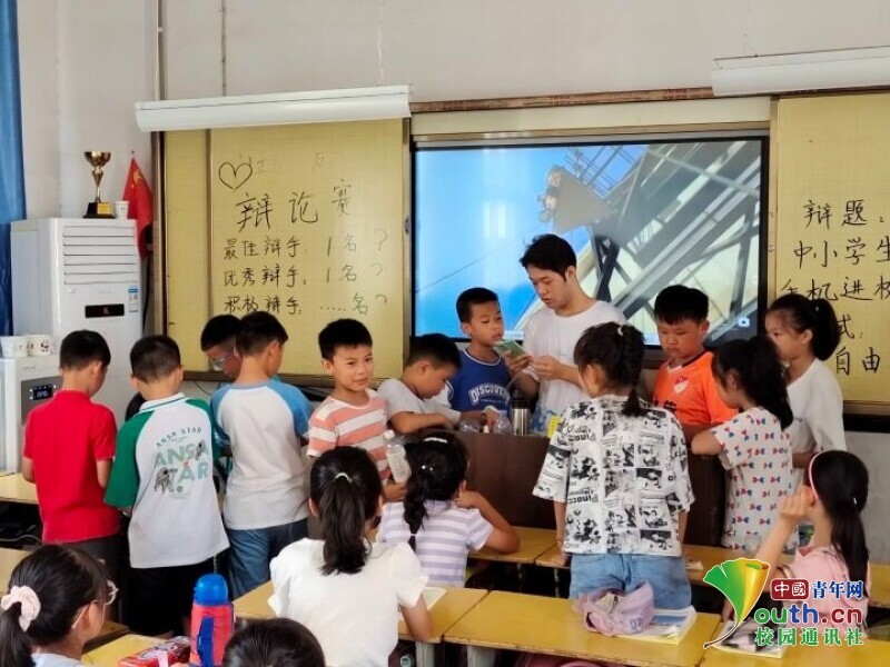 中国青年网孝感7月30日电(通讯员 肖宇凡 陈宇凡)为让乡村儿童有更加丰富多彩的假期生活,给予他们更多的关爱和陪伴,7月14日yl23455永利官网“益起阳光”志愿服务队赴孝感市毛陈镇第一小学进行了三下乡支教活动。志愿服务队围绕“科技强国·弘扬科学精神”主题,为当地的小学生开启了妙趣横生的“七彩假期”。