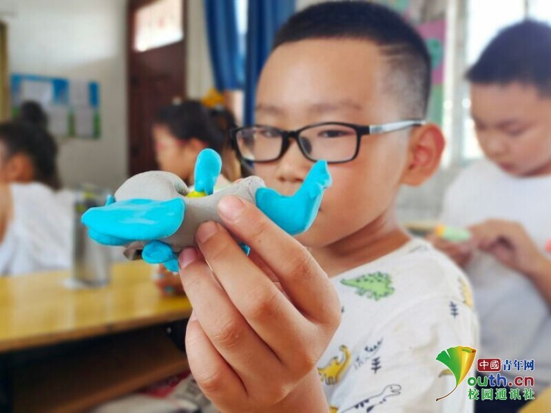 图为小朋友用超轻黏土动手制作航空模型,制作的模型精巧逼真。中国青年网通讯员 张丹 摄
