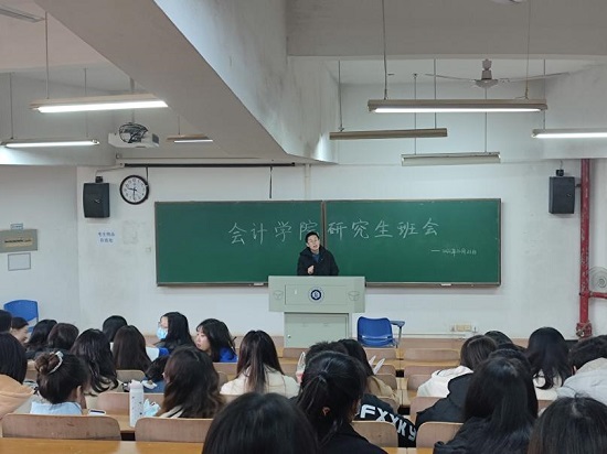 在主题班会上,赵立彬院长针对研究生的寒假生活,强调两点:一,疫情防控工作不能马虎,学生非必要不外出并倡导研究生严格遵守我校的请假外出制度,对自身的安全负责;二,把主要精力放在读书学习和学术研究上,希望大家在论文的写作中以探究的态度深入思考,争取做到论之有因,言之有物。同时,对自己的职业生涯做好规划,在寒假中进行自身的反思和补强。