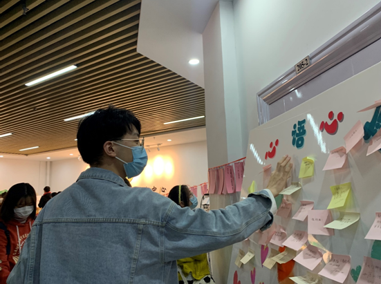 通过“心愿墙”活动,大家在便利贴上写下了自己的目标、理想、祝福、表白……一字一句都充满了对未来的期盼和展望;“心理压力我来测”活动中,可以通过简单便捷的心理问卷测试自己的心理压力,对自己的心理状态有一个初步的了解;在“拨开迷雾”活动中,同学们积极猜谜语,认真与同伴探讨答案。