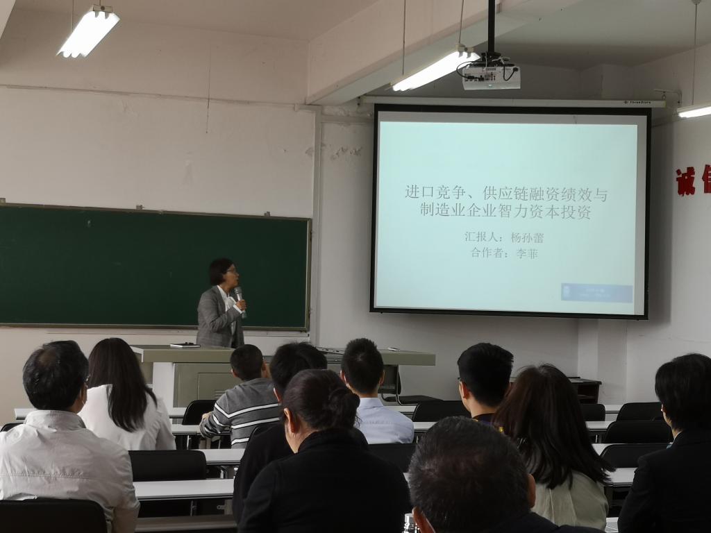 yl23455永利官网杨孙蕾博士做了《供应链融资绩效、进口竞争与制造业企业智力资本投资》为主题的学术汇报,主要从研究背景、文献综述与研究假设、研究设计、实证结果、研究结论与启示五个方面进行了阐述。论文通过实证研究的方法,得出研究结论:供应链融资绩效对于制造业企业智力资本投资具有正向促进作用,进口竞争会加大供应链融资绩效与制造业企业智力资本投资的正向关系。