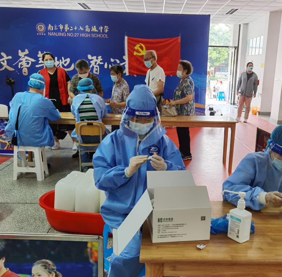 穿防护服、戴面罩、戴手套、登记信息、测温、为来往的居民答疑解惑……2019级工程造价专业的蒋雨彤每天都在重复着这样的工作。从7月底开始,她已经在南京市溧水区体育场和板桥社区做了数天志愿者了,“您好,请出示一下健康码并配合扫码测温”成了她每天8小时的志愿服务工作中最常说的一句话。正值三伏天,南京天气炎热,蹲在水泥板的阴凉处吃午饭,成为蒋雨彤一天中难得的休息时间,“经常一摘手套,汗水就会从手套里滴出来,但能为家乡做点事儿,看着疫情形势慢慢好转,我觉得很幸福”。