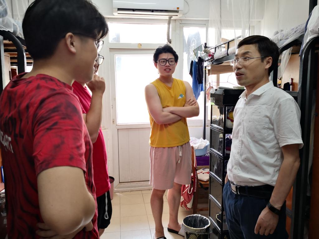 此次重点对宿舍的安全隐患、卫生情况进行检查,排查学生是否违反校规使用大功率电器、宿舍防火防盗措施是否到位等可能出现的问题。姜永杰要求同学们建立友好的寝室关系,爱护寝室环境,同时妥善保管贵重物品,共同营造良好的生活环境。此外,辅导员就宿舍的安全隐患做了仔细排查,对于寝室中有电线老化、脱落等现象,提醒同学们及时进行报修。