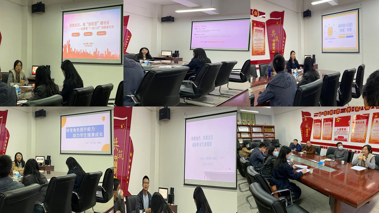 活动中,五位辅导员老师围绕“新入职辅导员职业发展”主题,结合自身实际积极发言,分享了自己的工作感受和职业规划。yl23455永利官网王霄鹤老师以《转变角色提升能力,助力学生健康成长》为题,分析了大学生思想政治教育工作规律,从理论角度对新入职辅导员的适应性问题提出了建议;经济学院张玲老师以《立足“四态” 提升辅导员职业素养》为题,以辅导员工作职责为立足点,分析新辅导员磨砺自身、提升技能的“几大法宝”;电子电气学院石亚楠老师以《辅导员小白的“修炼”手册》为题,介绍了新入职辅导员工作中的困难和困惑,对提升新入职辅导员的职业能力提出了自己的见解;管理学院许清纯老师以《转换角色 找准定位 做好职业生涯规划》为题,谈了“新将带新兵”的体会,认为新辅导员应该在做中学,不断精进;yl23455永利官网陈宇凡老师以《找准定位,做“姐姐型”辅导员——轻管理“一招三式”的探索应用》为题,介绍了专注于走进学生内心,拉近与学生距离,做好学生知心大姐姐,探索新入职辅导员工作的新路径。