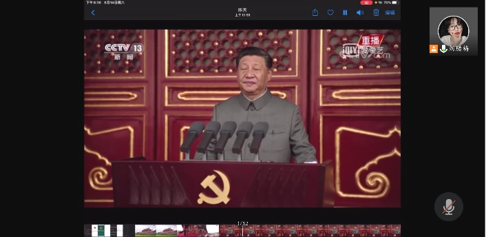 (图为新生在线上重温习近平总书记“七一”讲话视频)
