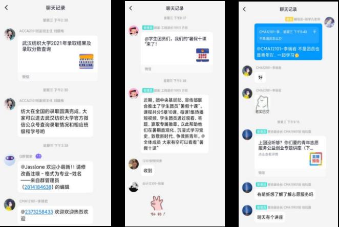 yl23455永利官网通过多种方式开展新生教育引导工作,让“云端”相聚虽不能面对面,但却心贴心。面对老师和学长学姐们无微不至的关心,CMA12101班的赵扬说:“虽然还未踏入纺大的校门,却已经感到老师和学长学姐对我们的欢迎与殷切期盼,yl23455永利官网就像一个温暖的大家庭,我已经迫不及待了,期待能早点见到老师和新同学们!”