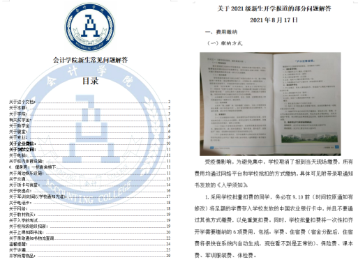 为适用新生对不同通讯方式的需求,及时为新生答疑解惑,学院建立了新生QQ群、微信群,先后制定了三版、共计两万九千余字的《新生常见问题解答》。各班副班主任,院团委和学生会的学生骨干们发挥所长,主动为新生介绍在纺大的学习、生活和各类校园活动。