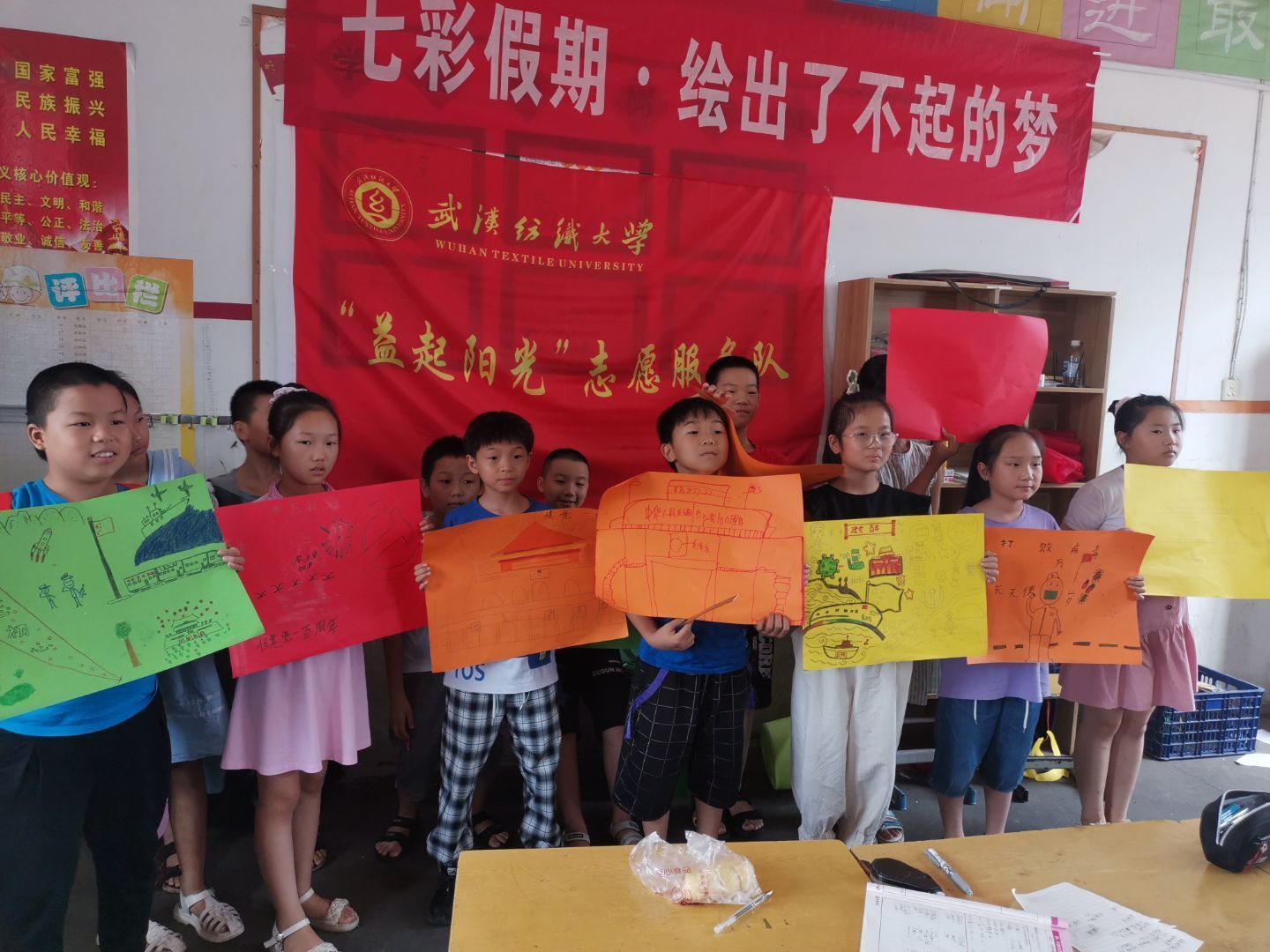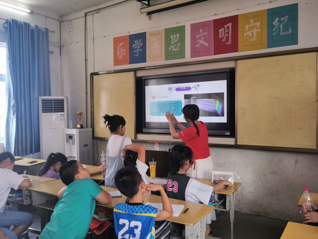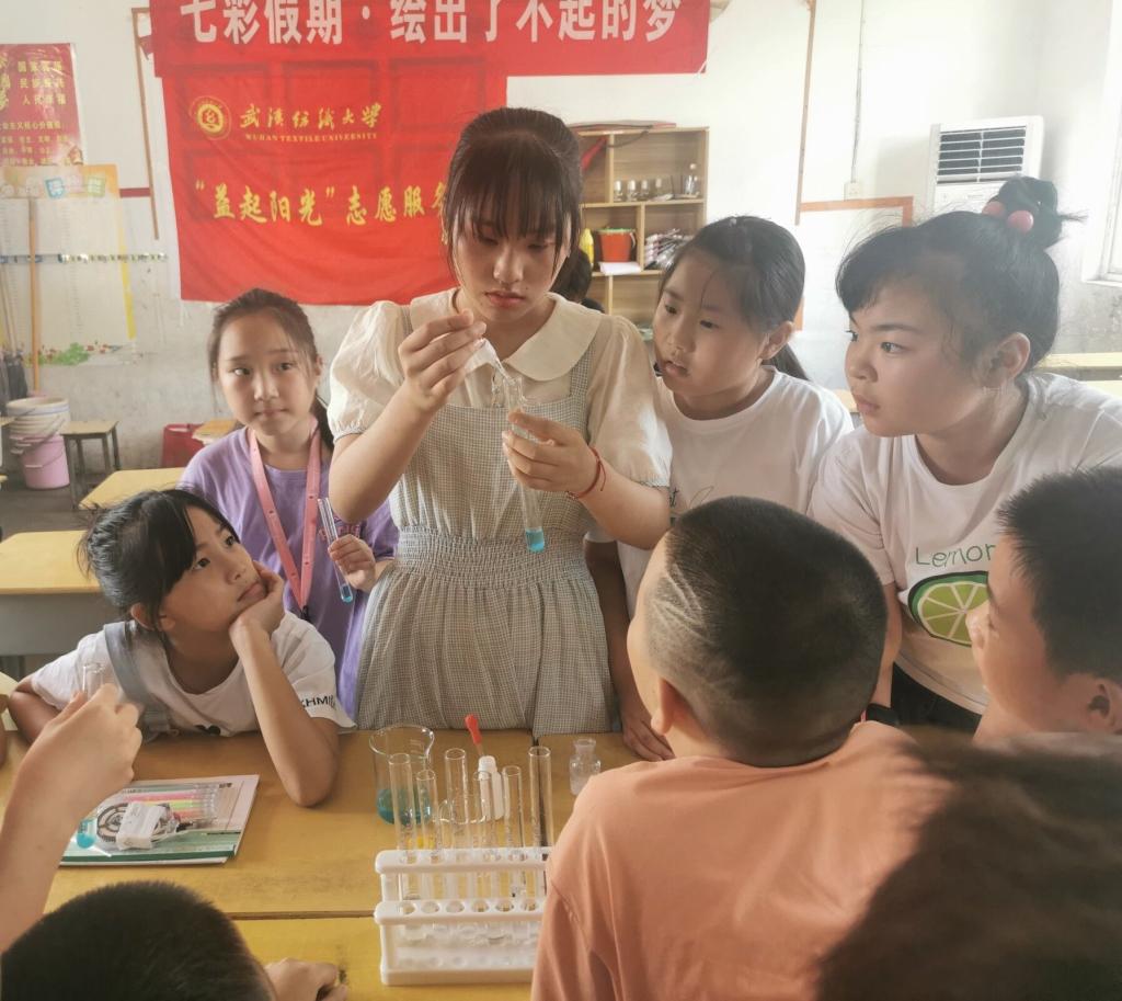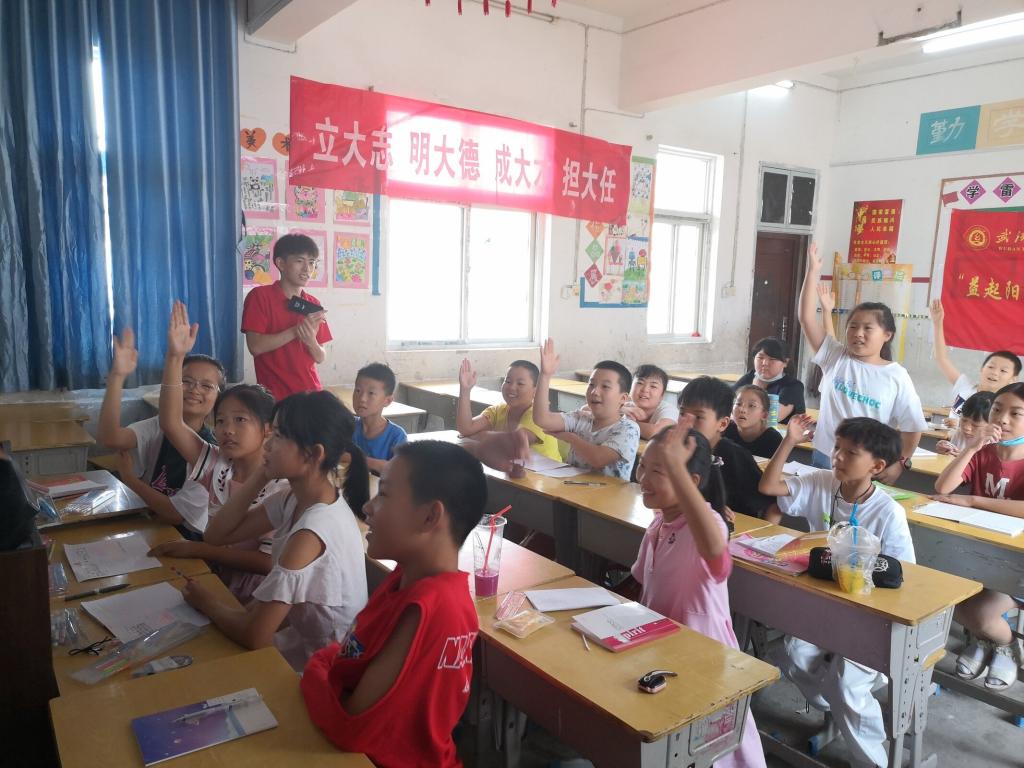 为让乡村儿童有更加丰富多彩的暑假生活,给予他们更多的关爱和陪伴,7月9日至7月18日,yl23455永利官网“绘阳光”志愿服务队走进湖北省孝感市孝南区毛陈镇第一小学,用党史教育、科普课堂、课业辅导、美育课程、诗词诵读、趣味游戏等多个“了不起的锦囊”,为当地的二十余名小学生绘出了妙趣横生的“七彩假期”。
