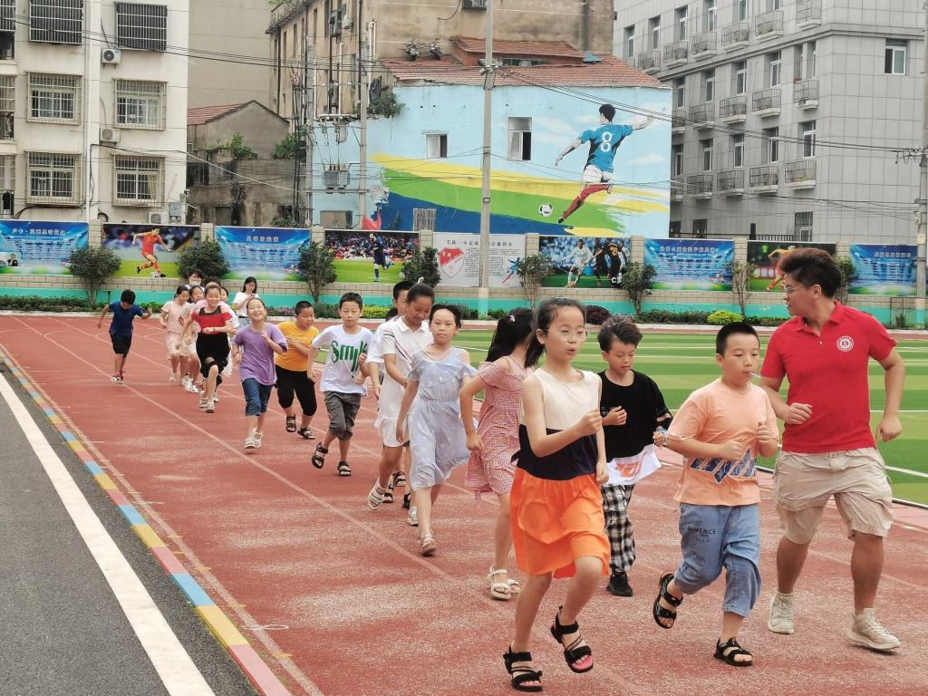 (志愿者陪同小朋友们晨跑)