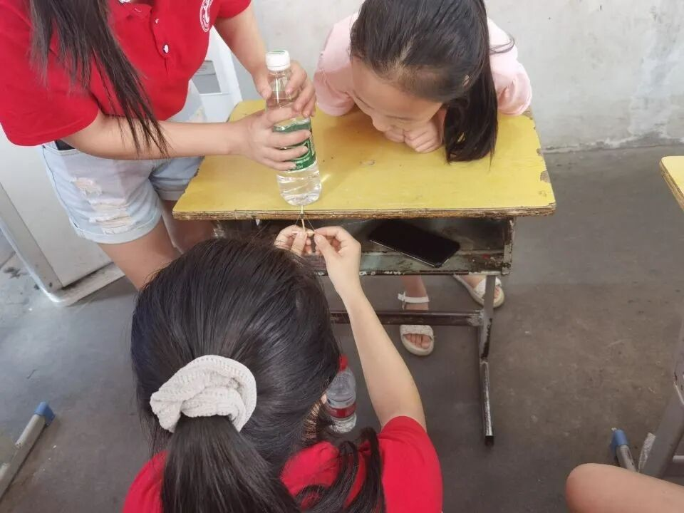 “三根火柴如何提起一瓶水?”“手帕为什么无法燃烧?”“有孔的纸为什么能拖住水?”“如何在家里造彩虹?”“酸和碱碰到一起会产生什么颜色的变化呢?”……为了激发小朋友们的学习兴趣,每次实验前,志愿者都会抛出一个问题,小朋友一边看志愿者演示,一边从现象里寻找问题的答案。有趣的实验现象加上志愿者风趣幽默的讲解,极大调动了小朋友们探索科学世界的热情,让小朋友们在快乐实践中不断学习新知识。