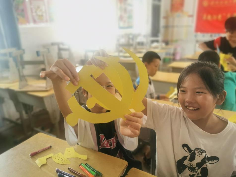 (小朋友们与“党徽”的合影)