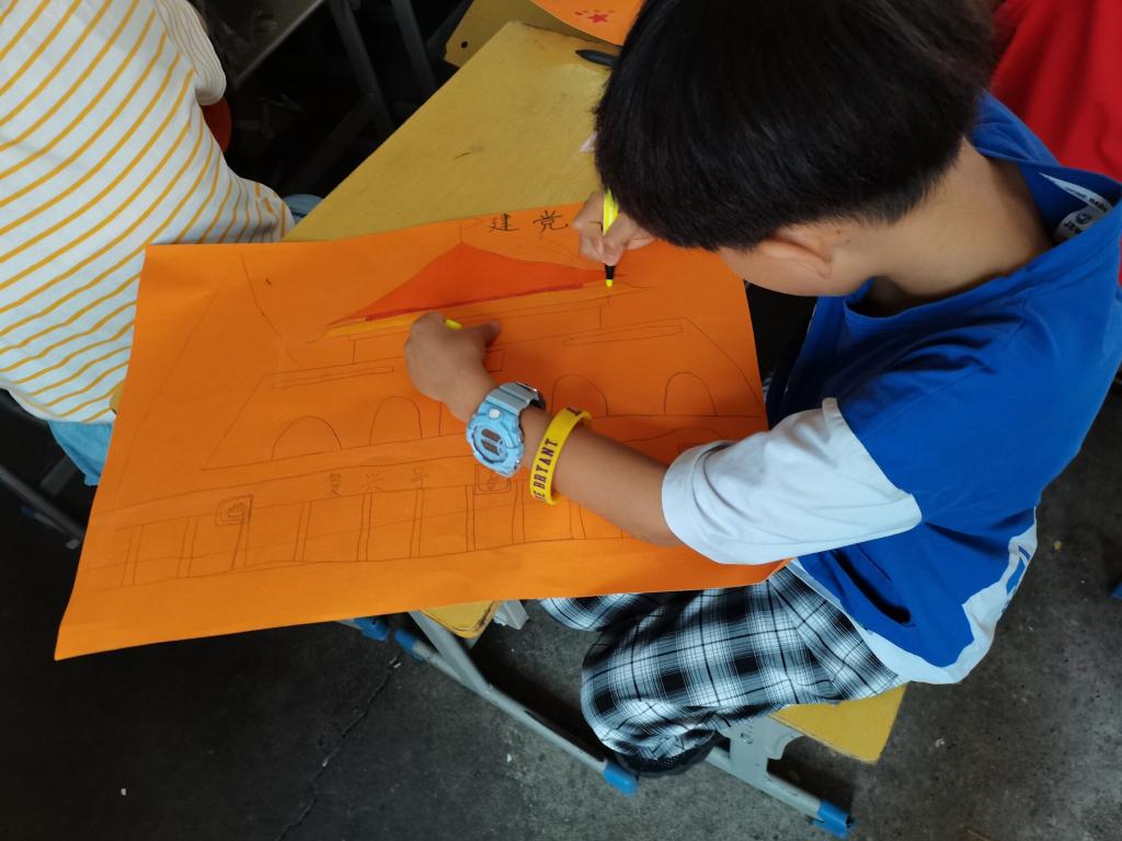(小朋友以“建党百年”为主题作画)