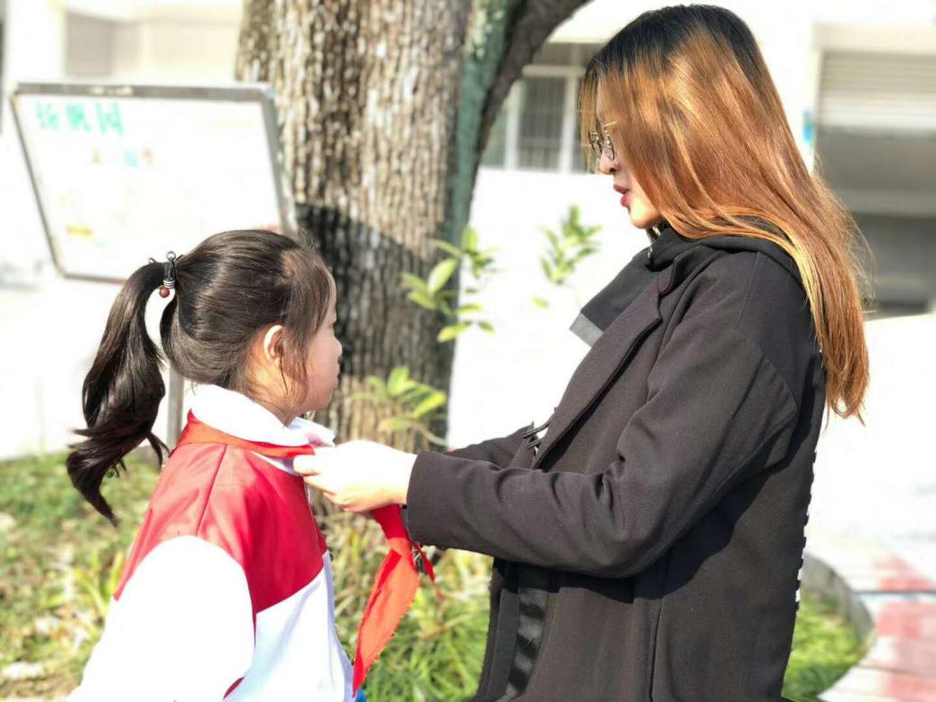 接下来,通过轻松的互动,陈宇凡跟同学们分享了支教这一年带给自己的成长。她向同学们展示了支教前的一张合影,让同学们找找哪个是她、猜猜她瘦了多少,“58斤”,公布答案后同学们发出一片惊叹,谈及原因,她说,做老师更要严于律己,做学生的榜样,坚持早起、跑步、规律饮食让她更健康和自信。她也向同学们展示了在工作之余,跟支教的小伙伴们一起去过的地方——理塘、稻城、黄龙、汶川、都江堰,每一张照片她都如数家珍。深入祖国基层的经历让她增长了见识,也更加热爱祖国的广袤大地,也是她加入中国共产党最坚定的信念所在。