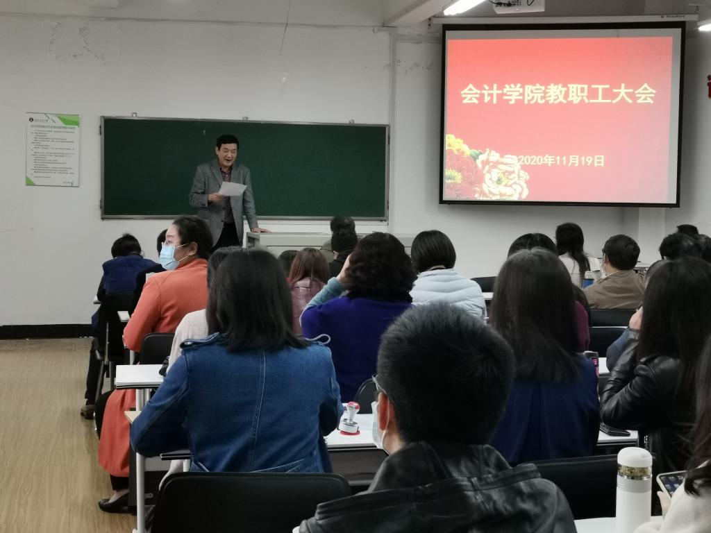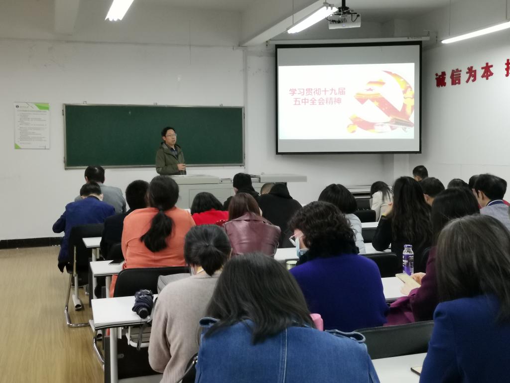 为深入学习贯彻党的十九届五中全会精神,按照《武汉纺织大学深入学习宣传贯彻党的十九届五中全会精神实施方案》和1112日校党委中心组(扩大)学习会议精神,我院召开教职工大会,进行十九届五中全会精神宣讲。宣讲学习会由学院党委书记、院长杜国良主持,常务副书记杨志强做宣讲报告。