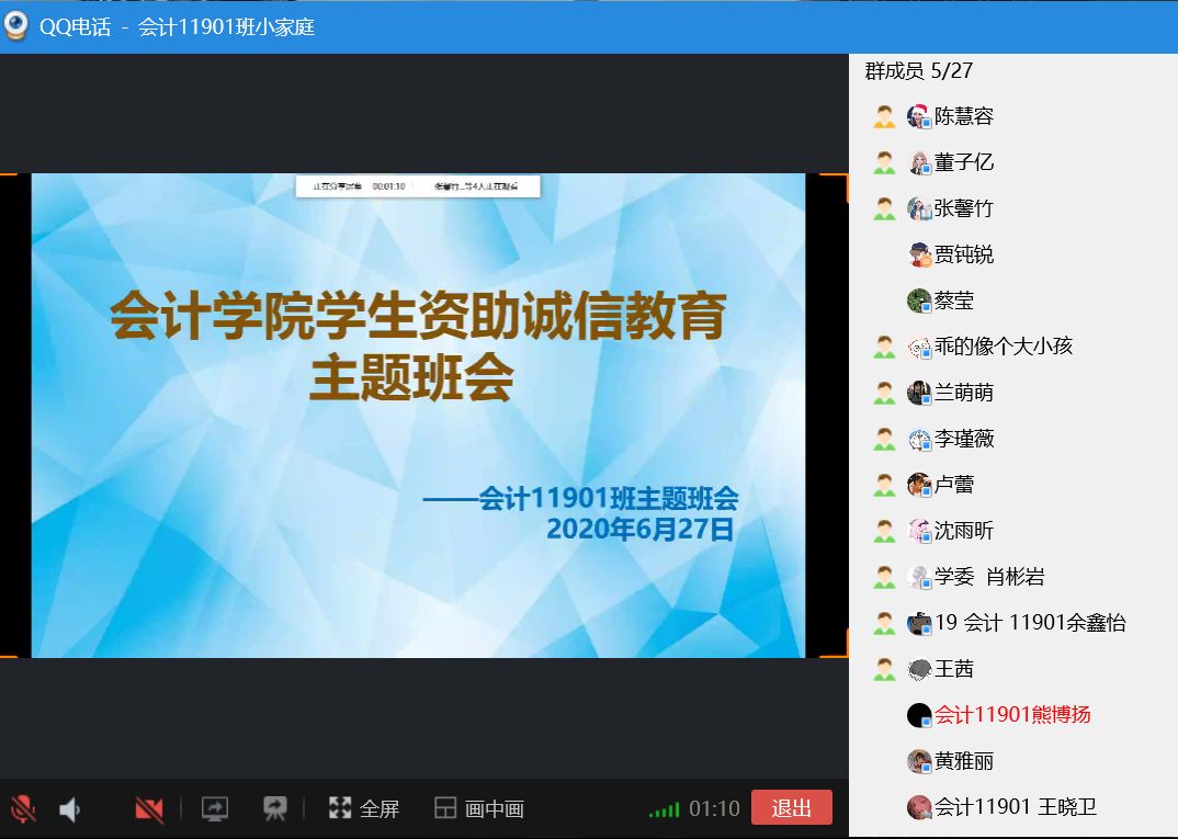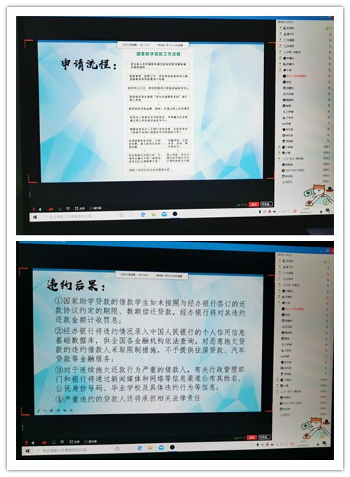 通过开展线上主题班会,强化学生对诚信的认识和理解,让同学们充分认识到诚实守信与实现自身价值的密切关系,牢固树立诚信为本、操守为重,守信光荣、失信可耻的信用意识和道德观念。班会详细介绍助学贷款进行借款、还款的流程。国家助学金贷款是党中央、国务院在社会主义市场经济条件下,利用金融手段完善我国普通高校资助政策体系,加大对普通高校贫困家庭学生资助力度所采取的一项重大措施。