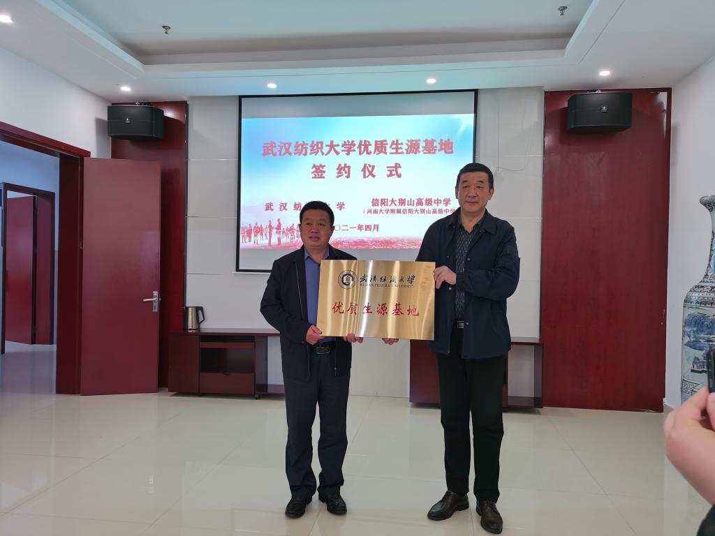 会后双方举行了《武汉纺织大学优质生源基地共建协议书》签订及授牌仪式。