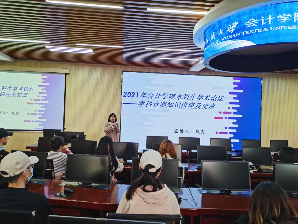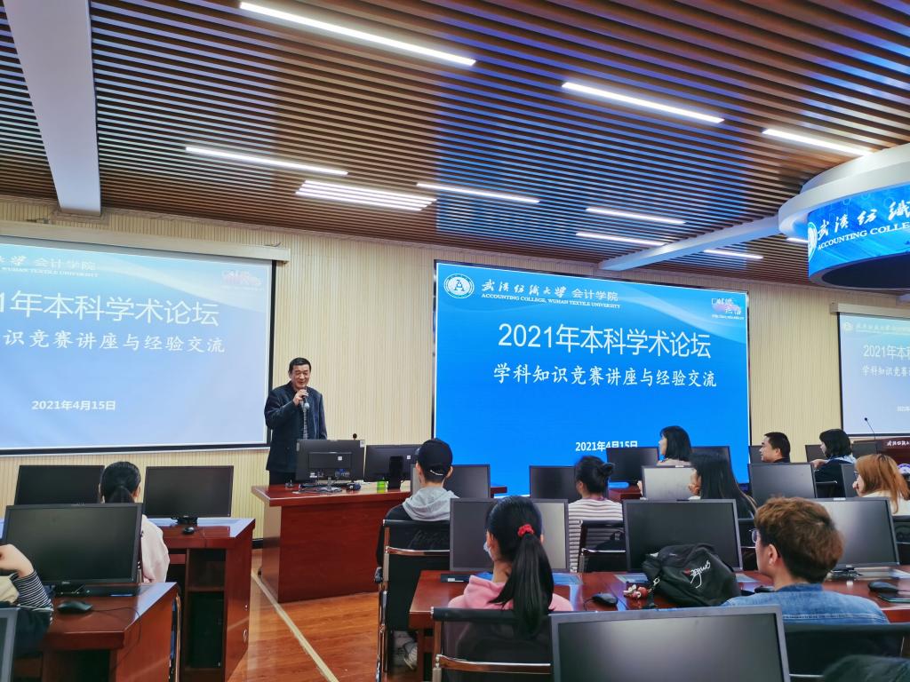 为了增强学院学术氛围,全面提升本科生教育质量,按照学校有关加强学院学术交流的相关精神,yl23455永利官网制定了2021年教师学术论坛、研究生学术论坛和本科生学术论坛相关计划。按照学术论坛安排,我院于4月15日下午启动了本年本科生学术论坛系列活动,本期论坛的主题是“学科竞赛知识讲座与交流”。主讲人是我院会计11703班的戴雯同学,学院院长杜国良、分管领导卢军副院长和肖丽副院长同100余名同学参加了本次活动。