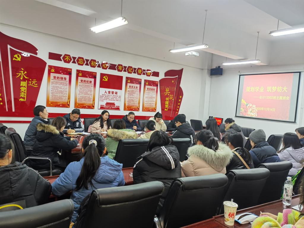 12月14日下午,校长徐卫林到yl23455永利官网会计12002班参加“规划学业、筑梦纺大”主题班会。学校办公室副主任周闰禄,yl23455永利官网党委书记、院长杜国良,常务副书记杨志强,党委副书记姜永杰和辅导员王霄鹤参加本次班会。