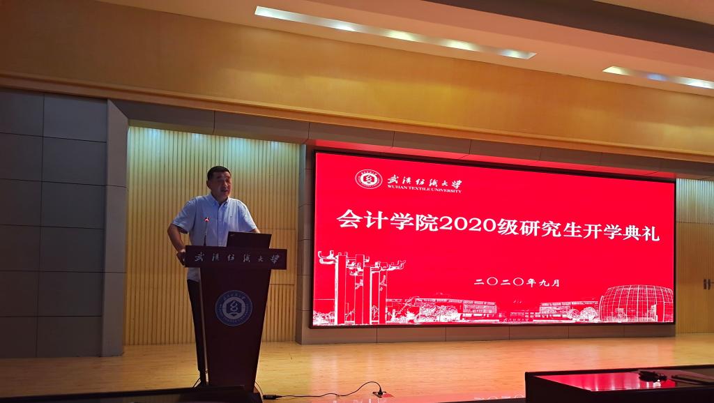 杜国良以《始于志向 勇于创新 用奋斗书写青春华章》为题,给全体研究生新生提出了殷切希望。他结合国内外疫情防控形势及同学们正常的求学与生活环境,提醒同学们感谢为控制疫情辛苦工作的防疫人员,要服从配合学校的防控管理,加强自身防护。同时从研究生学习模式与本科生的差异出发,为同学们尽快调整心态,适应新身份的转变,他提出殷切希望:一是保持客观严谨的科研态度和平和的心态,踏踏实实做研究,提升综合素质;二是合理规划学业,完善自身在研究生阶段应该具有的“能力框架”,学好专业课,提高人文素养;三是坚守诚信底线,“诚信为本,操守为重,坚持准则,不做假账”是会计职业的基本准则和行为规范,希望同学们能够努力成为一个学业精深、业务精湛、情操高尚的会计人才。