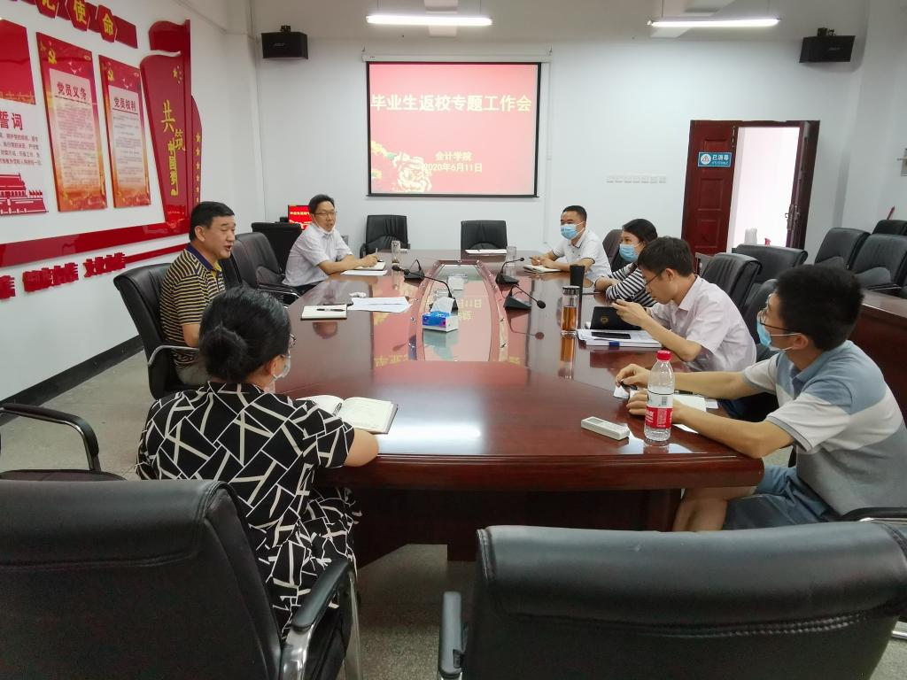 6月11日下午,我院在412会议室召开毕业生返校复学专项工作会,传达学校返校复学动员大会精神,检查学院毕业生返校工作落实情况。学院领导班子成员参加会议。会议由党委书记、院长杜国良主持。