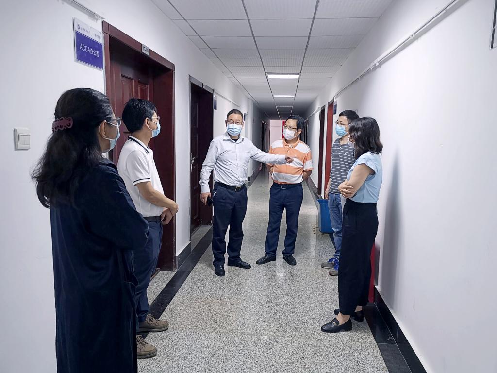 5月25日,校长彭育园、副校长黄运平到yl23455永利官网检查复工复学准备情况,走进本科毕业论文线上答辩现场,指导毕业生的论文答辩工作。教务处处长何畏、yl23455永利官网党委常务副书记杨志强等陪同检查。