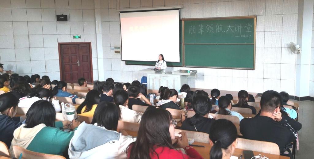 11月7日下午,我院朋辈领航报告会在崇德楼T102举行。学院2018-2019学年国家奖学金获得者、湖北省青马工程学员王梅分享了她的大学学习和生活感悟,2019级全体新生参加了报告会。