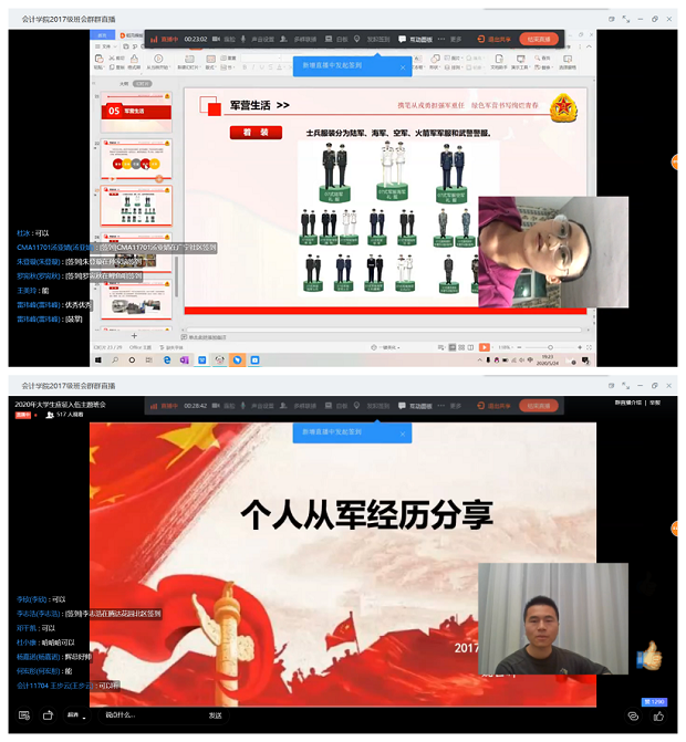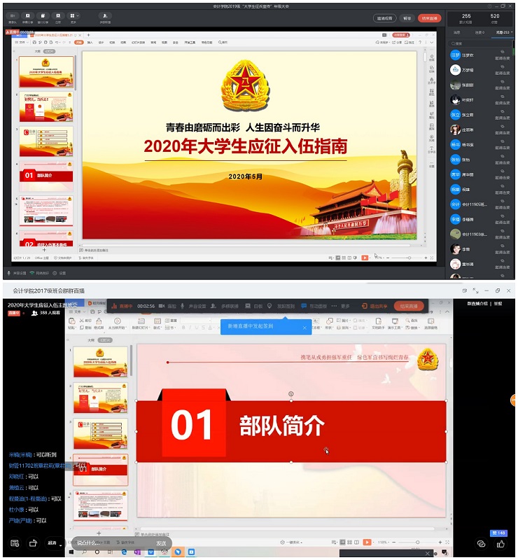 为做好2020年大学生入伍征兵宣传工作,鼓励大学生积极应征入伍,提高兵源征集质量,推进国防和军队现代化建设,2020年5月24日晚,yl23455永利官网各年级通过钉钉在线直播的方式召开了征兵宣传动员与国防教育主题讲座。