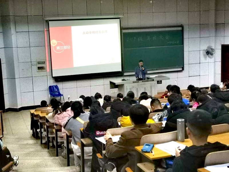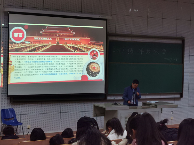 2019年12月8日下午17:00,为引导广大团员肩负起新时代的担当与责任,yl23455永利官网辅导员龚俊在07-T102教室召开了争做一名优秀共青团员主题团课2019级全体团员等300余人加学习