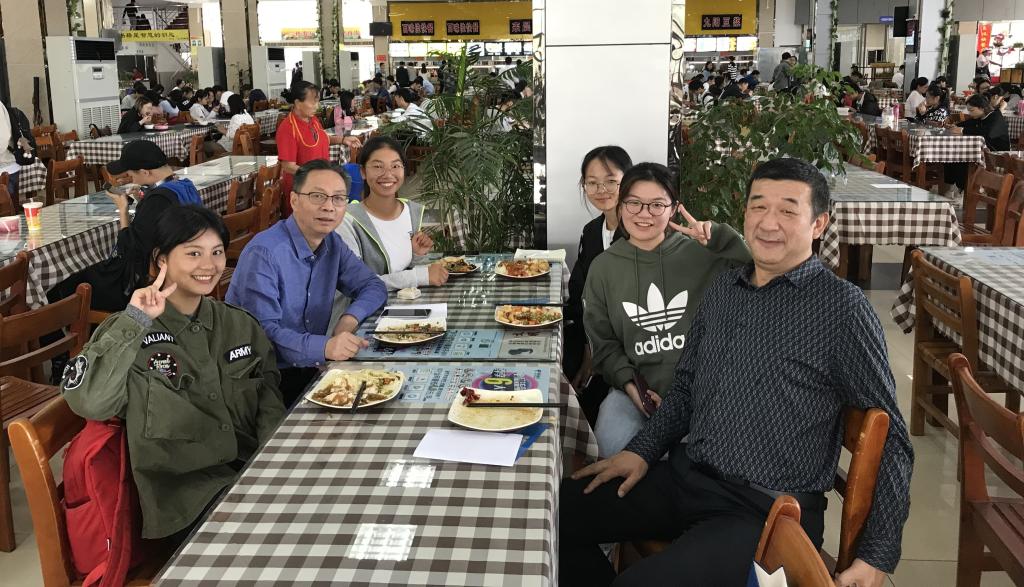 校党委书记韦一良与结对宿舍学生共进午餐