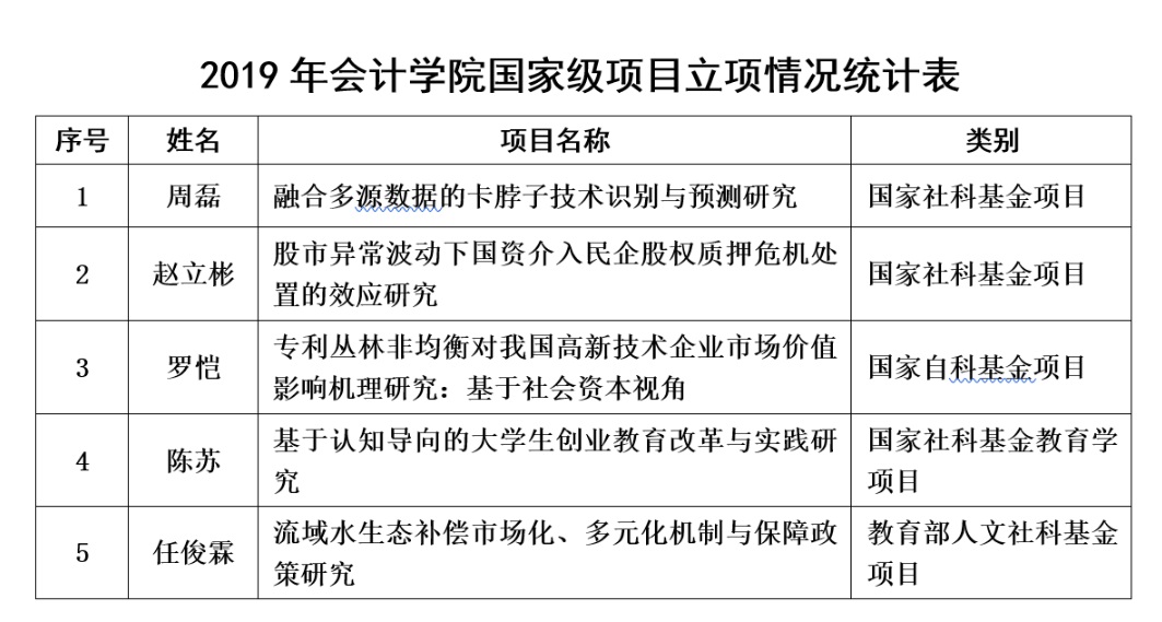 2019年学院中标国家基金项目5项