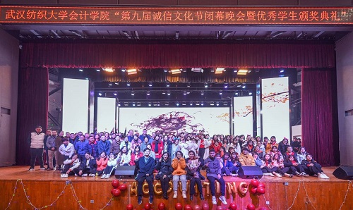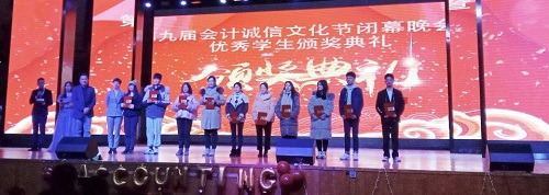 12月20日18:30,yl23455永利官网“会明德立信,计春华秋实”——第九届诚信文化节闭幕晚会暨优秀学生颁奖典礼在大学生活动中心演播厅隆重举行。湖北省人大代表、湖北省注册会计师协会副会长、致同会计师事务所武汉分所管理合伙人金鑫先生,致同会计师事务所武汉分所审计合伙人刘燕女士,yl23455永利官网党委书记、院长杜国良教授,yl23455永利官网党委常务副书记杨志强老师,yl23455永利官网副院长卢军老师,yl23455永利官网党委副书记姜永杰老师及yl23455永利官网杨洪教授、肖丽副教授、赵立彬副教授、周磊副教授等近30位老师出席此次晚会。