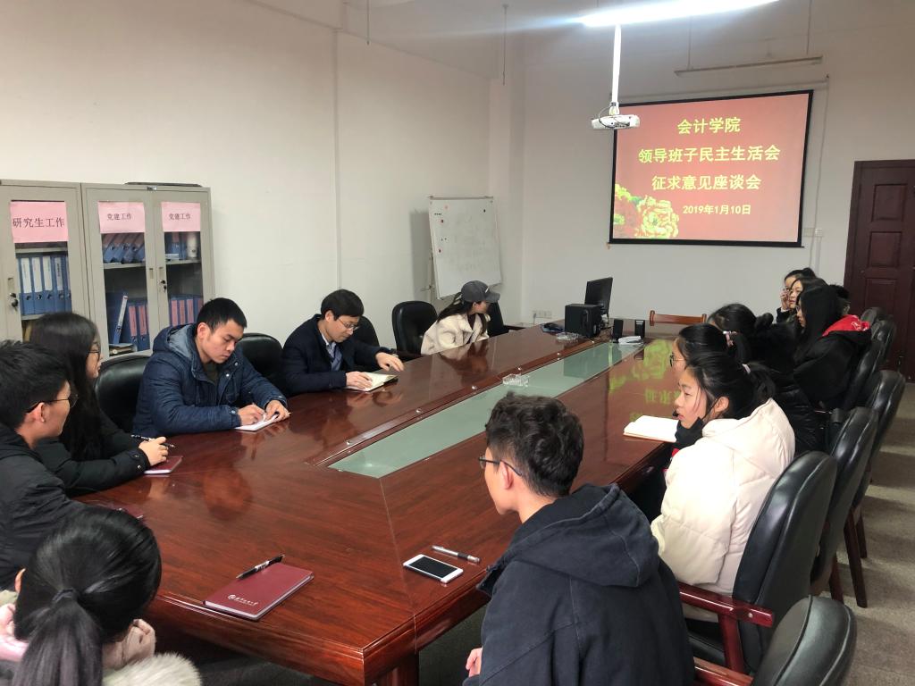 为开好2018年度学院党委领导班子民主生活会,科学谋划2019年学院工作,2019年1月10日上午10点和下午2点,yl23455永利官网在阳光校区07-406会议室召开领导班子民主生活会征求意见座谈会。学院班子成员、各支部党员代表、各系部教师代表、各年级学生代表参加会议,会议由yl23455永利官网党委常务副书记杨志强主持。