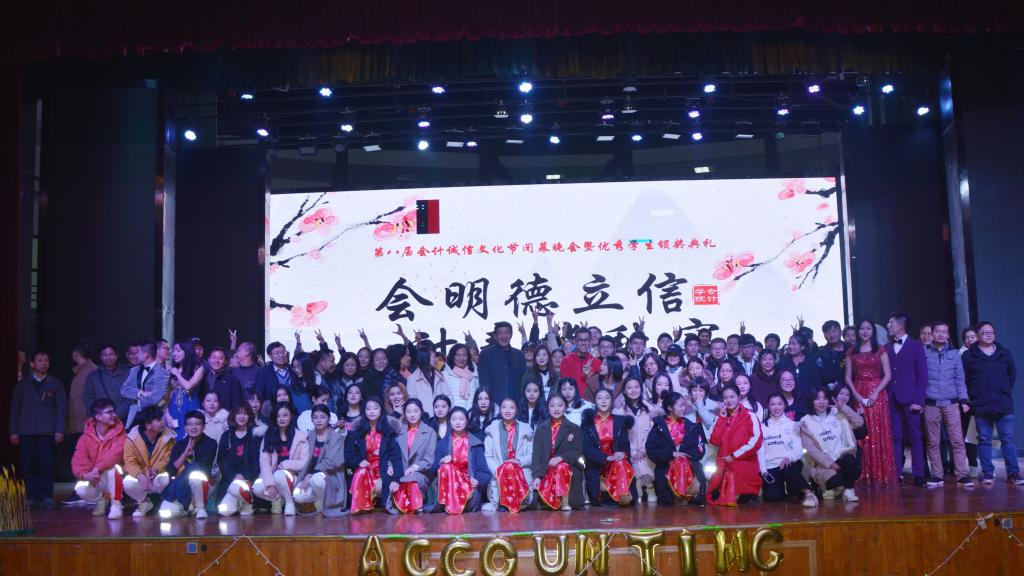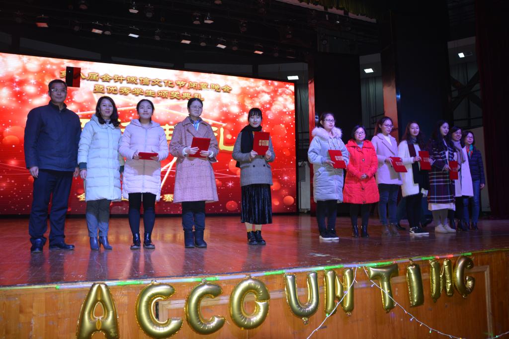 12月19日,yl23455永利官网“会明德立信,计春华秋实”——第八届会计诚信文化节闭幕晚会暨优秀学生颁奖典礼在大学生活动中心举行。yl23455永利官网党委书记、院长杜国良教授,常务副书记杨志强老师,副院长刘书兰教授,副书记姜永杰老师,学院全体师生参加了晚会!