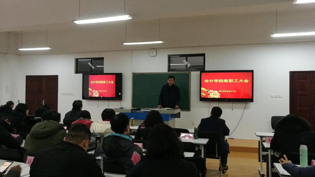 2月21日下午,我院在崇德楼304会议室召开全体教职工大会,部署新学期各项工作,组织2月政治理论学习,会议由党委书记、院长杜国良主持。