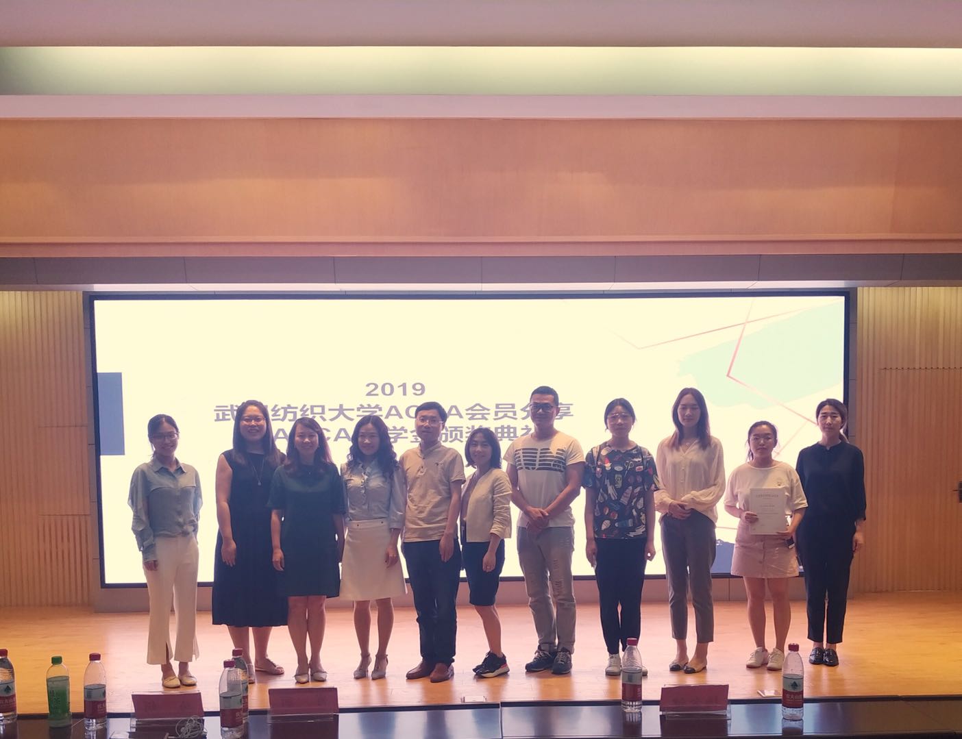 分享结束后,举行了武汉纺织大学2018-2019学年秋季楷博ACCA奖学金颁奖仪式, ACCA全球统考F4、F5、F6、F9、SBR单科年级第一名的柯书恒、张紫蝶、董轲、戚文臻同学上台领取了奖状和奖学金。