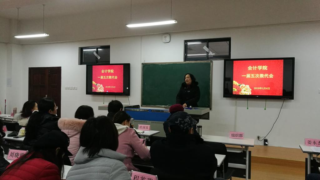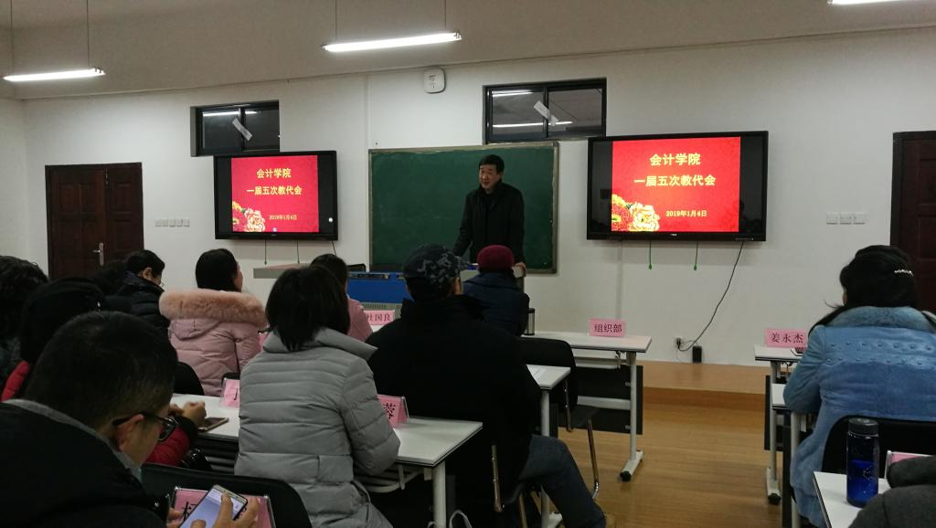 2019年1月4日下午,在阳光校区崇德楼304会议室,yl23455永利官网一届五次教代会顺利召开。校工会副主席卫冬妹、yl23455永利官网领导班子全体成员出席会议,30名正式代表和37名列席老师参加会议,会议由学院党委副书记姜永杰主持。