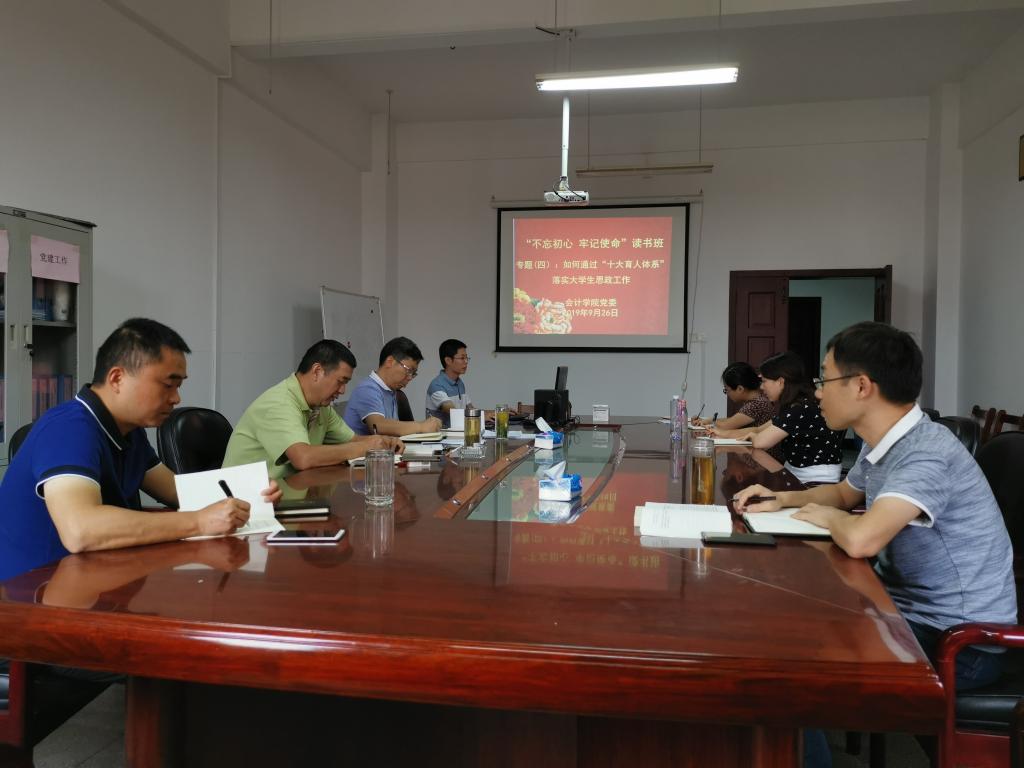 9月26日上午,我院党委在崇德楼406会议室举行“不忘初心、牢记使命”主题教育读书班第四次集中学习研讨,学院领导班子成员参加了学习研讨。党委书记、院长杜国良主持会议。