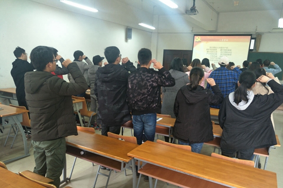 322日,yl23455永利官网各学生党支部召开学习中国共产党第十九届二中、三中全会精神和两会精神专题支部主题党日活动。yl23455永利官网各教、学生党支部分别在7号教学楼424、406、402和409会议室召开主题党日活动,各支部书记为支部全体党员上党课,对下阶段各项工作提出要求。