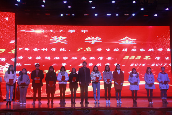 回望过去,2017年yl23455永利官网涌现了众多先进的个人和集体。他们默默耕耘,一步一个脚印,用青春和汗水实现着自己的梦想。晚会中,学院党委书记、院长杜国良教授,常务副书记杨志强书记,副院长祝建军教授、刘书兰教授、王珍义教授,党委副书记熊敏书记分别为各类奖学金获得者、先进集体和优秀学生代表、第二课堂获奖代表以及yl23455永利官网年度十大人物和学院十佳寝室学生代表颁奖,激励会院学子继续努力,用毅力与拼搏追寻梦想,再创辉煌!
